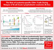 High frequency of immune checkpoint TIM3+ CD4+ T cells are predictive of relapse in patients with B-cell acute lymphoblastic leukemia (B-ALL), although the mechanisms underlying this association remain unclear. Venkatesh et al use primary B-ALL samples and a novel murine model to show that neoantigen-specific CD4+ T cells can be polarized into type 1 regulatory T cells (Tr1) within the leukemia microenvironment. Reprogramming these neoantigen-specific CD4+ T cells from TIM3+ Tr1 to TIM3- T helper cell phenotypes may counteract local immunosuppression and enhance clearance of residual leukemia. This study reveals a previously underappreciated mechanism of immune evasion in B-ALL and opens new directions for leveraging CD4+ T-cell plasticity in leukemia immunotherapy.