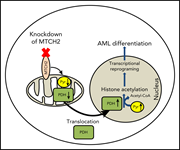Arising in a screen to identify mitochondrial gene products necessary for the growth of acute myeloid leukemia (AML) cells, mitochondrial carrier homolog 2 (MTCH2) is shown to influence the differentiation of AML cells by toggling histone acetylation downstream of regulation of pyruvate metabolism.