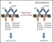 Transformation to large cell lymphoma (Richter syndrome) in 2% to 10% of patients with chronic lymphocytic leukemia (CLL) carries a very poor prognosis, but its pathobiology is notoriously hard to study using primary samples and in vitro models. Chakraborty et al used murine models and CRISPR technology to demonstrate how biallelic loss of function of TP53 and the cell cycle regulators CDKN2A and CDKN2B facilitates dysregulated B-cell receptor (BCR)–dependent proliferation while creating vulnerabilities to therapeutic targeting with a combination of BCR and CDK4/6 inhibitors.