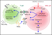 Acute myeloid leukemia (AML) relapse after allogeneic hematopoietic cell transplantation (HCT) is common. Ho and colleagues report that inhibition of mouse-double-minute-2 (MDM2) increases the potency of T-cell responses to AML and facilitates the “graft-versusleukemia” effect in murine models of HCT. This strategy is being tested in a clinical trial and could also be evaluated in the future in the context of targeted T-cell therapies, such as chimeric antigen receptor T cells.