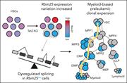Bramlett and colleagues identify molecular determinants of hematopoietic clonal expansion in response to the mutation of Tet2 by analyzing preleukemic states in an inducible mouse model. Genetic inactivation of Tet2 does not impact hematopoietic clones uniformly, with marked heterogeneity in expansion over time associated with aberrant expression of RNA splicing factors. Repression of RNA splicing factor Rbm25 triggers clonal expansion of Tet2 knockout hematopoietic cells in vitro and in vivo. These data help explain the heterogeneity of outcome observed in patients with TET2-mutated hematopoiesis.
