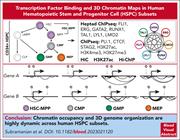 Subramanian and colleagues report on a map of genome-wide chromatin contacts of canonical transcription factor complexes that elucidates the determinants of cell-type–specific gene expression and maturation. This represents a valuable resource database for analysis of the regulatory networks of normal hematopoietic stem cell maturation and their disruption in leukemic cells.