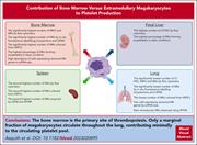 Recent reports of megakaryocytes within the spleen and lung have generated controversy as to the relative contribution of extramedullary megakaryopoiesis in circulating platelet mass. Asquith et al used a series of elegant studies to establish that there are far more megakaryocytes in the bone marrow than in extramedullary sites and that they have a greater proplatelet-formation capacity, confirming the bone marrow as the major contributor to steady state platelet production.