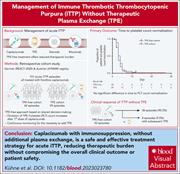 Plasma exchange (PE) and immunosuppression (IS) have been mainstays of therapy for immune thrombocytopenic purpura (iTTP) for 30 years, with the addition of caplacizumab to the regimen, which has recently shown to accelerate and improve outcomes. Kühne et al used the Austrian Thrombotic Microangiopathy Registry to compare outcomes of caplacizumab and IS regimens with and without PE. The principal finding is that the PE-free regimen was safe, with key clinical outcomes not differing from PE-containing regimens, and hospitalizations were shorter. A definitive randomized trial is in progress, but in the interim, PE-free regimens for iTTP are appropriate in scenarios where PE is not immediately available.