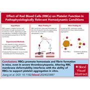 Red blood cells (RBCs) do more than carry hemoglobin and provide oxygen to tissues; abnormal RBCs are known to be prothrombogenic. Using murine and in vitro microfluidic models to control RBC and platelet counts, Jiang et al demonstrate a hemostatic effect of RBCs via platelet activation in settings of moderate thrombocytopenia and a platelet-independent effect via fibrin formation in severe pancytopenia. Furthermore, in high shear conditions, RBCs released adenosine 5’-diphosphate, contributing to the platelet activation and thrombosis seen in those with left ventricular assist devices. Collectively, these data stimulate further research into how RBCs support hemostasis in high-risk clinical circumstances.