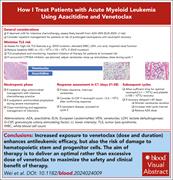 Treatment for patients with acute myeloid leukemia (AML) is being transformed for some patients, as targeted agents increase complete remission rates and survival when appropriately applied. Although the efficacy of newer regimens has been established in major clinical trials, use in routine practice is often challenging, and careful choices need to be made. Associate Editor Selina M. Luger introduces this case-based How I Treat series designed to provide guidance in those circumstances. Wei et al discuss how to maximize the benefits when the venetoclax-azacitidine regimen was indicated, while Issa and colleagues discuss differentiation therapy, highlighting how the clinical course for patients varies from what is seen with intensive chemotherapy-based induction regimens. Green and Wang tackle the challenge of managing patients with secondary AML. Finally, Roboz and Canaani outline how maintenance can benefit selected patients not undergoing allogeneic transplant, while exploring the many unanswered questions that arise in clinical practice.