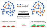 Laser scanning confocal micrograph of a human plasma blood clot with fluorescently labeled fibrin. The plasma for this clot was from a volunteer with a high percentage of the fibrinogen splice variant fibrinogen γ′. An increased percentage of fibrinogen γ′ results in the formation of blood clots with denser fibrin networks that are harder to break down. See the article by Macrae et al.