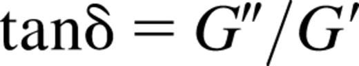 ) was calculated to evaluate the relative ratio between viscous and elastic properties. For a viscous material, tanδ >> 0 ie, G″ >> G′, whereas for an elastic solid, tanδ << 0, ie, G′ >> G″ . For a viscoelastic material with tanδ = 1, the amounts of energy dissipated and stored are equal. The values for both G′ and G″ were obtained at a frequency of 0.1 Hz. The displacement of 10 random particles was measured per sample, and each sample was studied in triplicate.