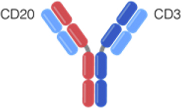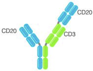 | Glofitamab15 | | IgG1 | Head-to-tail fusion | 2:1 | SP34-der.(CD3ε) | By-L1 (type 2 epitope, identical to obinutuzumab) | IgG1-P329G-LALA (no FcγR binding) |