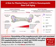 The role of megakaryocyte and platelet-associated regulation of hematopoietic stem cells (HSCs) is increasingly recognized. Zhang et al provide insight into the aging megakaryocytic niche and its influence on the age-associated decline in HSC and progenitor cell function. The authors demonstrate that remodeling of the megakaryocytic niche and associated platelet factor 4 (PF4) downregulation are central mechanisms driving HSC aging. Notably, PF4 supplementation restores HSC function through low-density lipoprotein receptor and C-X-C motif chemokine receptor 3 signaling, providing novel insight into strategies to rejuvenate aged HSCs.