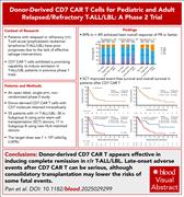 Patients with relapsed or refractory T-cell acute lymphoblastic leukemia/lymphoma continue to have poor outcomes. Pan et al evaluate donor-derived CD7 chimeric antigen receptor (CAR) T cells engineered to retain the CD7 molecule intracellularly to prevent fratricide in a study of 55 patients, 38 of whom received CAR T cells derived from their original transplant donor and 17 from a new donor. The authors report promising activity, with 89% of treated patients achieving at least a partial response or better; however, durable remissions occurred only in patients consolidated with hematopoietic stem cell transplantation, indicating that the value of this therapy is as a bridge to transplant.