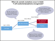 Fewer than 5% of people with chronic human T-cell leukemia virus type 1 (HTLV-1) infection develop adult T-cell leukemia/lymphoma (ATLL), and the interval between infection and leukemia diagnosis is typically decades. In this Plenary Paper, Rowan and colleagues map the emergence of clones bearing ATLL-associated genomic variants and leukemogenic mutations, revealing the kinetics of evolution of the malignant clone in ATLL and raising the prospect for development of predictive biomarkers of transformation.