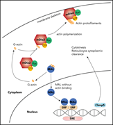 Scanning electron microscopic view of an mDia2-deficient enucleating late-stage bone marrow erythroblast carrying 2 extruded nuclei. See the article by Liu et al on page 398.