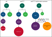 Leukemic transformation of myeloproliferative neoplasms (MPN) has a poor prognosis and is commonly associated with mutational inactivation of TP53. Li and colleagues demonstrate in mouse models and in primary cells that biallelic TP53 inactivation in the presence of JAK2V617F induces erythroleukemia associated with aberrant activation of the BMP2/SMAD pathway, recurrent copy number alterations, and DNA damage. These observations provide entry points for novel approaches to this lethal complication of MPN.