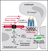 Neutrophils must penetrate the endothelial barrier to diapedese into sites of infection or inflammation. Though well recognized to be initiated by neutrophil adherence through adhesion molecules, the process by which the endothelial barrier is breached is not established. In this month’s CME article, Wang and colleagues demonstrate that adhesion cooperates with blood flow–induced shear stress and increased endothelial membrane tension to activate PIEZO1, the mechanosensitive cation channel that activates downstream signaling events that open the endothelial barrier.
