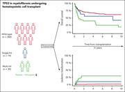 Mutations in TP53 are associated with poor prognosis in many hematologic malignancies. Gagelmann et al confirmed that this is also true for patients with myelofibrosis who undergo hematopoietic stem cell transplantation. In an analysis of 349 patients, 49 had TP53 mutations, and 30 of the 49 had multihit mutations. As with patients with acute leukemia, patients with single-hit mutations have survival rates similar to those with wild-type TP53. However, patients with multihit TP53 mutations have a shorter time to leukemic transformation and a markedly reduced median survival (1.5 years vs 13.5 years with wild-type TP53).