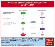 BCL11A is the major repressor of fetal hemoglobin (HgbF) synthesis, but the process by which it is repressed during fetal development and derepressed in adult hematopoiesis is not known. Huang and colleagues characterized a microRNA (miRNA) inhibitory pathway responsible for HgbF suppression in adult erythroid cells. The authors previously identified HIC2 as a transcriptional repressor of BCL11A that regulated hemoglobin switching. Here, they report that HIC2 transcriptional downregulation is mediated by let-7 and that BCL11A upregulation with subsequent repression of HgbF depends on the activity of let-7 miRNA.